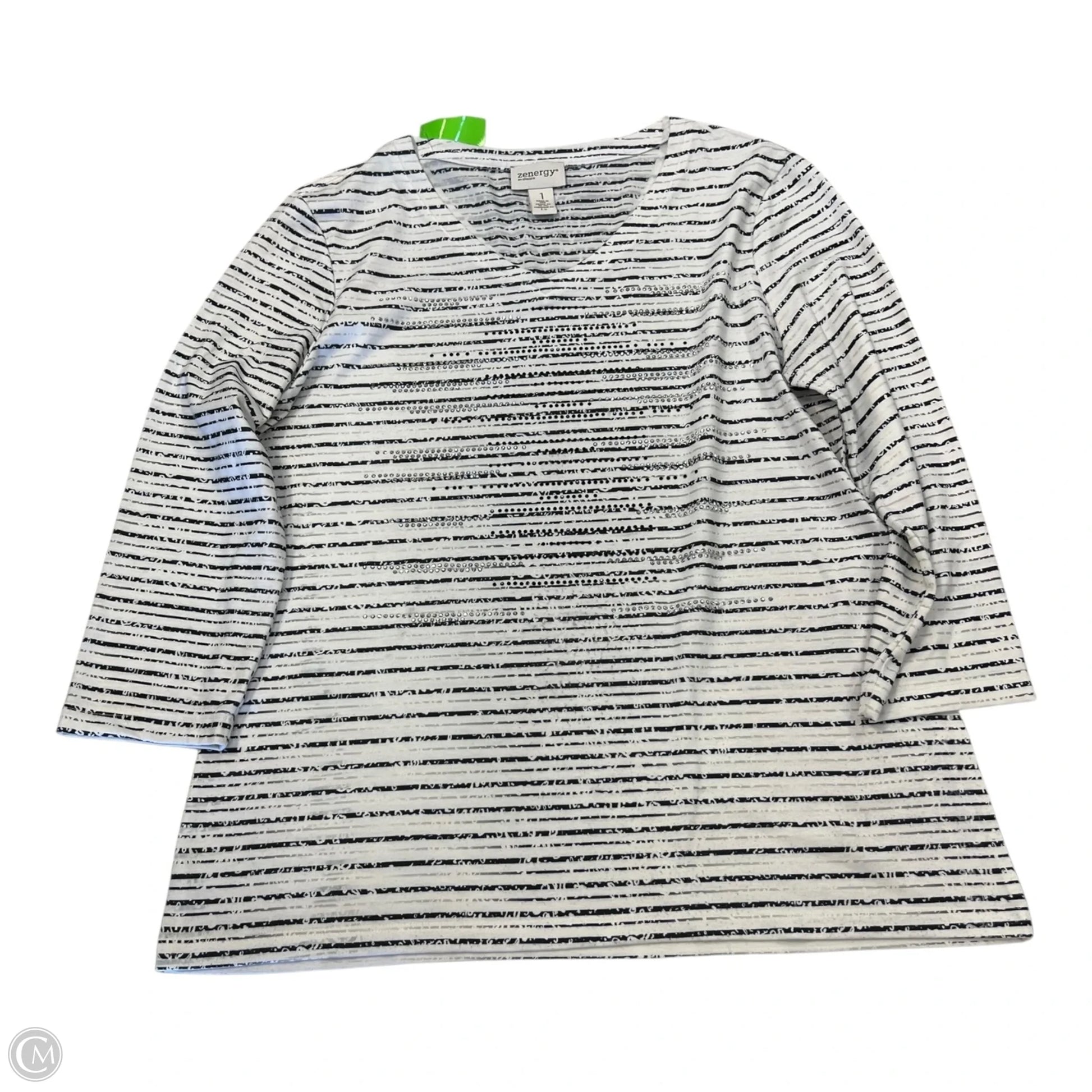 Top Long Sleeve By Chicos In Black & White, Size: M